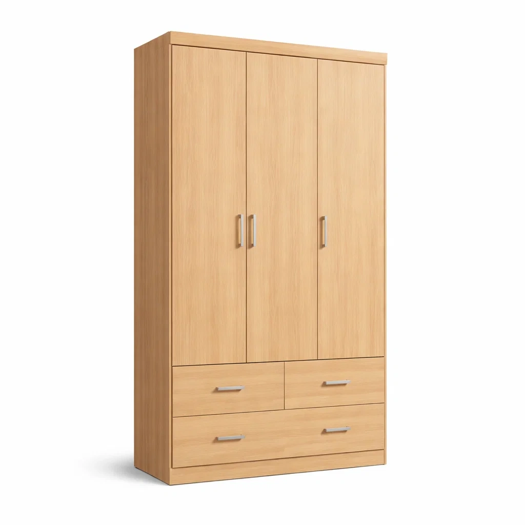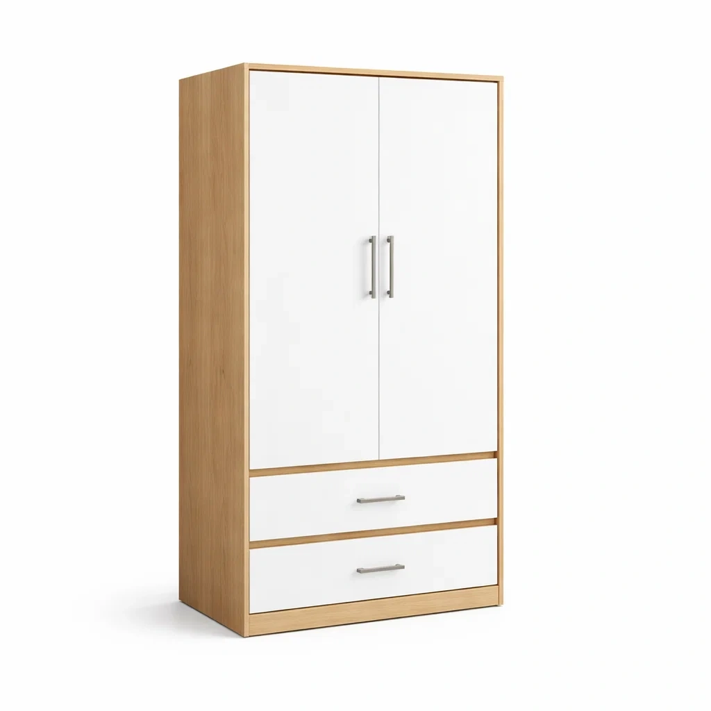 Armoire en bois composite chêne clair avec portes et tiroirs