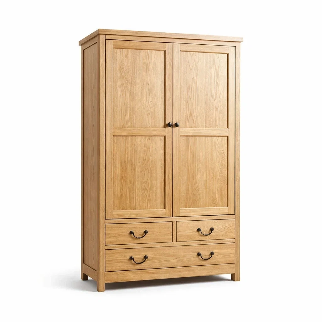 Armoire en chêne massif avec portes et tiroirs