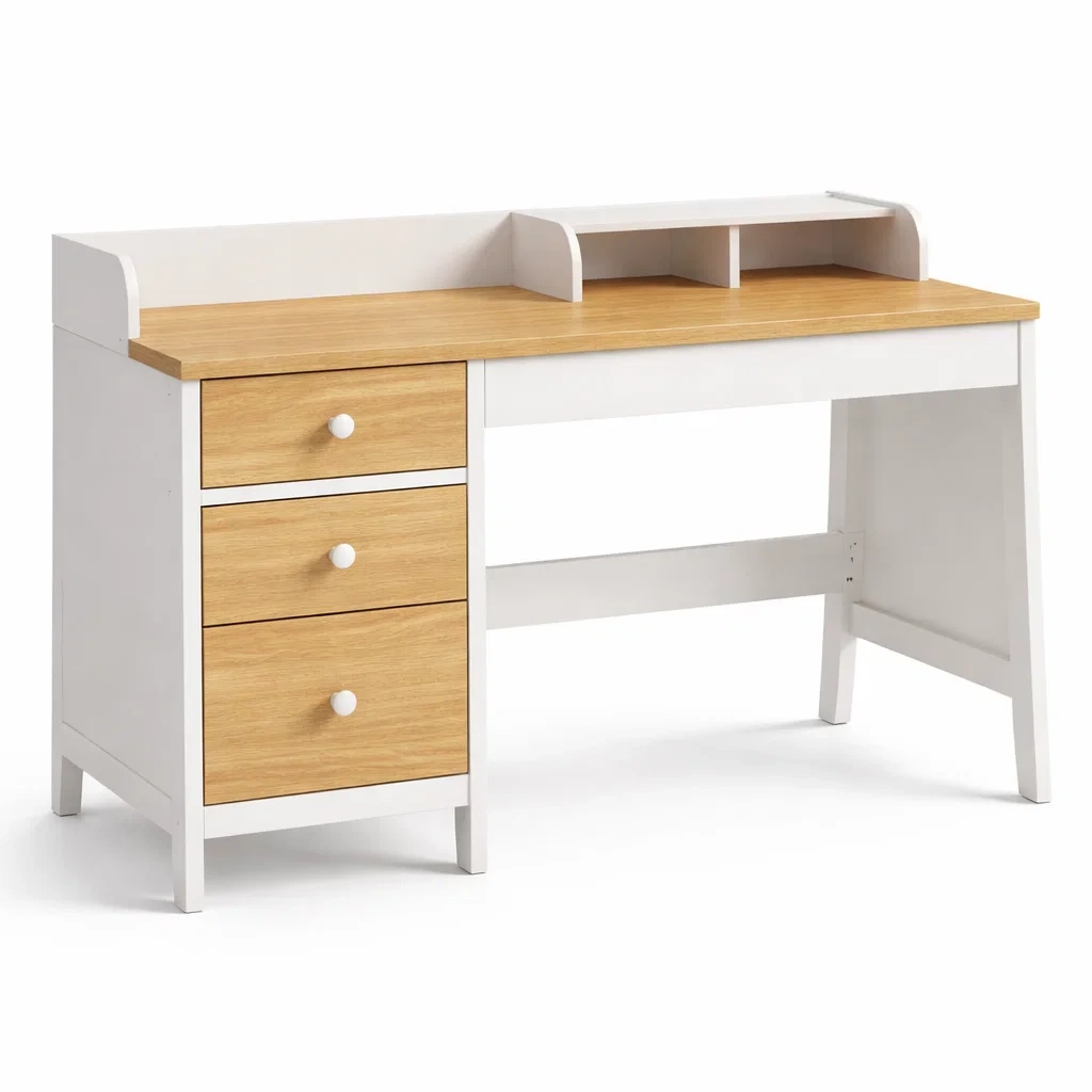 Ce bureau est fabriqué en bois MDF avec des panneaux de particules, offrant une structure stable et durable. Il dispose de trois tiroirs spacieux pour un rangement efficace. La couleur blanche et chêne ajoute une touche moderne et épurée. Les dimensions du bureau sont de 120 cm de longueur, 50 cm de largeur et 75 cm de hauteur. Entretien facile avec un chiffon humide.