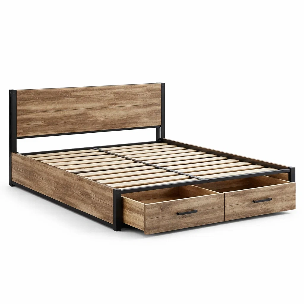 Le lit dispose de 2 tiroirs pratiques pour le rangement sous le cadre.
