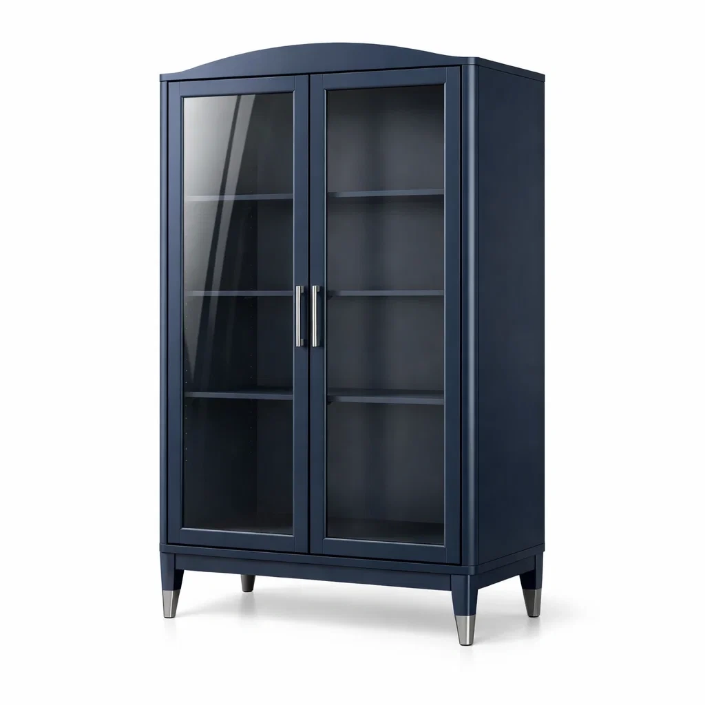 Cette vitrine est fabriquée en bois avec des portes en verre trempé de 5 mm d'épaisseur. Elle comprend quatre étagères intérieures pour maximiser le rangement. Les poignées sont en acier inoxydable, apportant une touche moderne. Conçue pour une utilisation en intérieur.